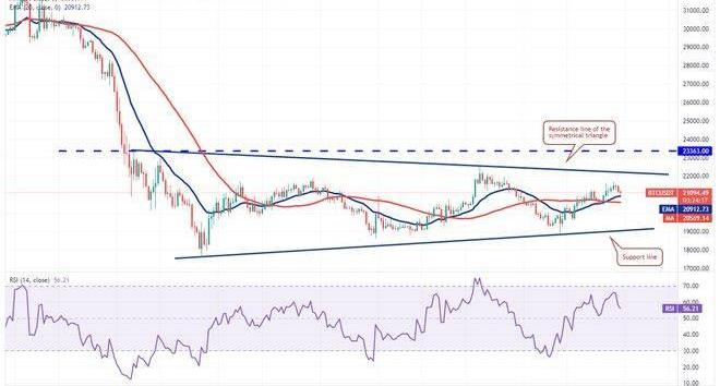 另一方面,如果價格從移動平均線反彈,則表明多頭正在逢低買入。這可能會改善從三角形突破的前景。然后該貨幣對可能反彈至上方阻力位23,363美元。