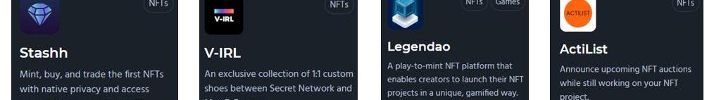 除了DeFi和NFT外,Secret生態還涉及其它板塊,比如游戲平臺onenet.、戰斗類游戲SecretHeroes、多角色扮演卡牌游戲SecretDreamscape、DAO創建平臺SecretDAO、通訊工具Alter、對傳輸內容進行加密的Fardels和具有隱私功能的分布式存儲項目JACKAL。