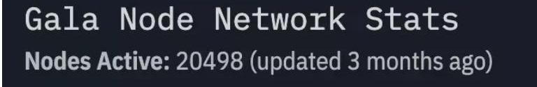 成為Gala創始節點的收益主要體現在兩方面:創始節點可進行投票決定平臺上線的游戲;創始節點獲得GalaGames和游戲的運行收入;此外,根據隨機分配算法,新游戲的NFT也會空投給創始節點。新游戲中的NFT由游戲工作室們提供,并在GalaGames的商店中交易。除了投票外,雖然成為Gala創始節點需要提供電腦等設備,但就像上文提及的,成為Gala節點具體需要貢獻的內容并不清晰,對外也沒有具體信息的披露。并且,其數據庫中的活躍節點數據更新是在3月前。