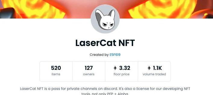 Dao/俱樂部門票:NFTKOLLaserCat397的DAO的門票,持有該NFT可以進入LaserCat397的社群,獲取優質的NFT信息。2022年4月12地板價也是達到了3.32ETH。