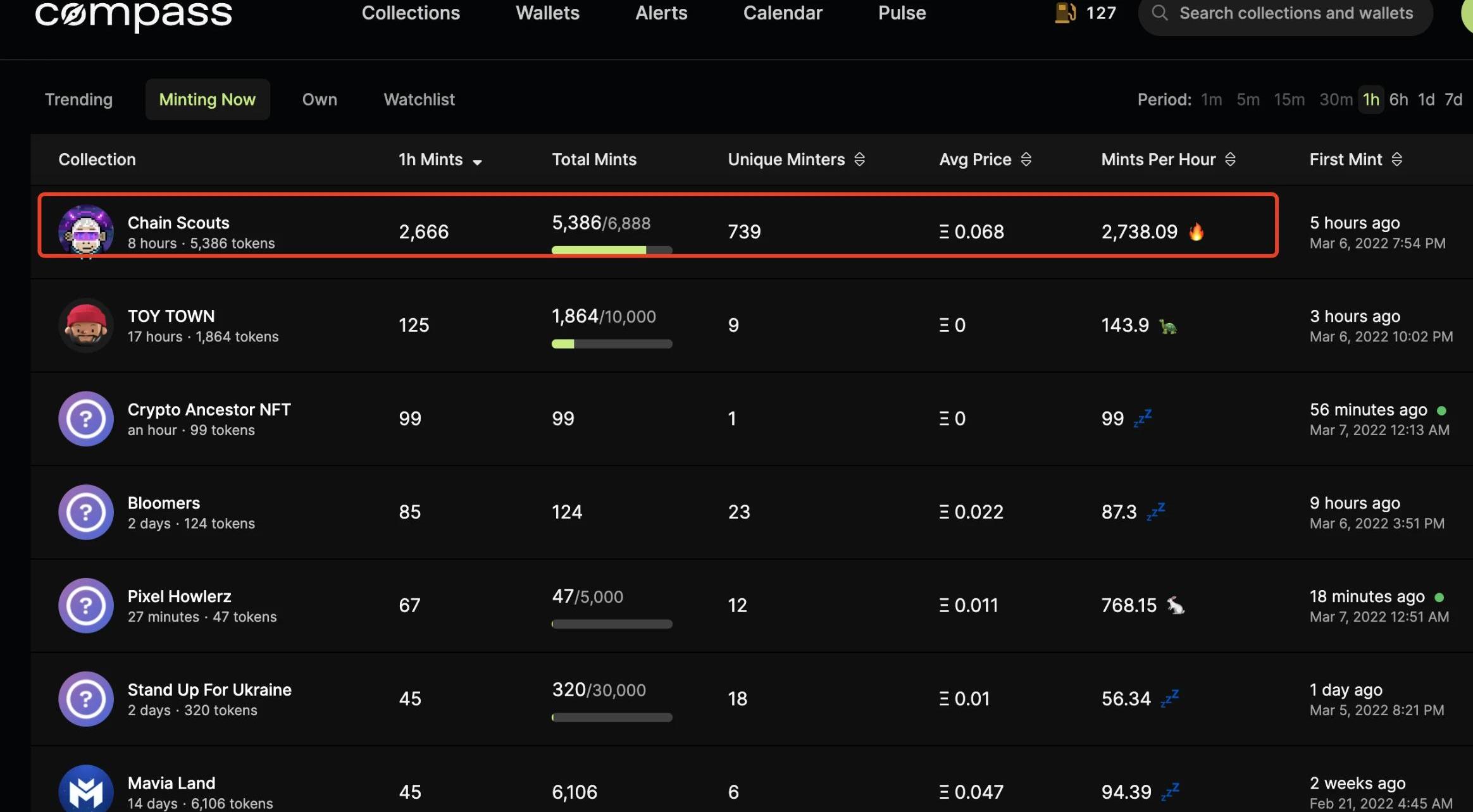 2.進入工具網站https://compass.art/collections/minting查詢正在mint的項目。