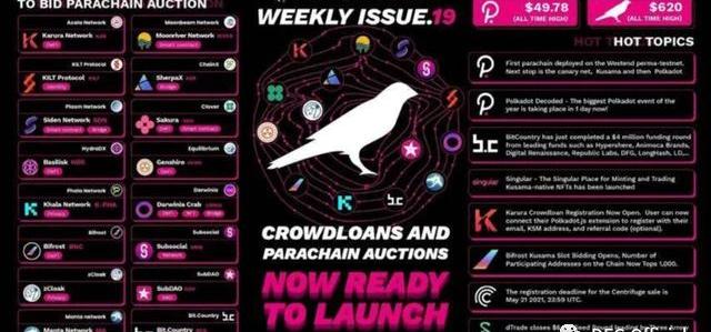 XRP/HKD+3.02%6月4日,Kusama上線了第一條公益平行鏈Statemine,這標志著Kusama生態正式起航。6月8日,GavinWood正式宣布了有關Kusama插槽拍賣的時間安排,Kusama網絡第一次啟動平行鏈插槽拍賣的時間預計是6月15日晚上20:00。預計初期將進行5次拍賣,每次間隔7天,若沒有發現重大問題則將進一步開放更多插槽。作為波卡路線圖中最為關鍵的里程碑之一,拍賣一事與生態各方息息相關,哪個項目終將競拍成功無疑會成為行業焦點。縱觀Kusama插槽拍賣前夕,DFG的Portfolio:Acala、Plasm、Bifrost、Crust、Darwinia、HydraDX、Zenlink、Equilibrium、Apron等,它們的先行網皆計劃參與KSM的插槽拍賣。