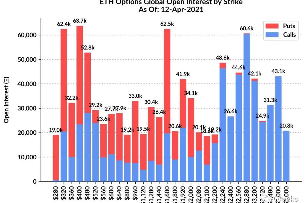從OptionFlows數據看,看跌期權成交量較大,近一周看跌期權成交都比較強勁。大宗交易集中在短期淺虛值看跌,量不大。以太坊目前4月期限大約是29.3萬ETH,6月期限大約是40.3萬ETH,以太坊倉位有所上升。