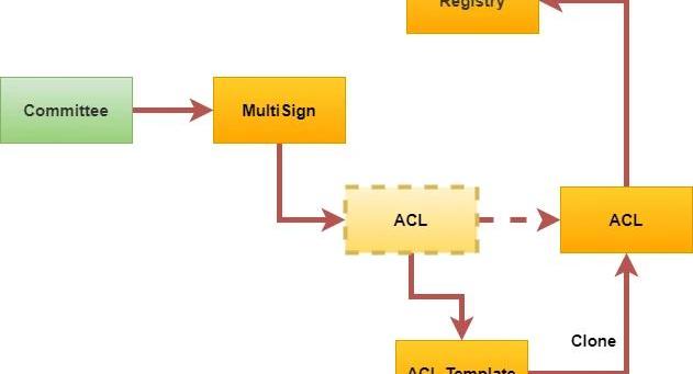 委員會通過MultiSign合約進行升級的部署,部署通過先部署模板合約以Clone方式進行合約的升級,升級的ACL合約數據也一并遷移過去。升級后ACL會更新在Registry的注冊信息,升級的過程是一筆交易,所以升級過程不會影響交易到調用方的使用。