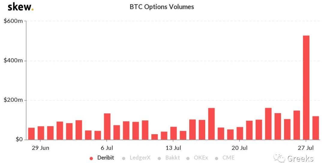 從持倉量變化看,主要倉位集中在了31Jul,但主要持倉量增長來自于次月和季度的深度虛值的期權。