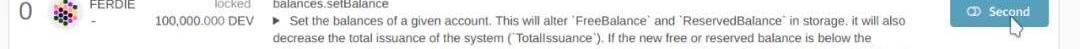 提出議案首先需要你綁定一些代幣。為了確保你有足夠的代幣進行最小的存款,你可以檢查鏈狀態下的參數。在PolkadotApps上,你可以使用“民主”這一欄來提出新的提案。為了提交提案,你需要提交所謂的原像哈希。原像哈希只是要頒布的提案的哈希值。獲取原像哈希的最簡單方法是單擊“Submitpreimage”按鈕并配置你提案建議的操作。例如,如果你想提議帳戶“Dave”的余額為10個代幣,那么你的提議可能類似于下圖所示。原像哈希為0xa50af1fadfca818feea213762d14cd198404d5496bca691294ec724be9d2a4c0你可以復制此原像哈希并將其保存到下一步。此時不需要單擊SubmitPreimage,盡管可以這樣做。我們將在下一節討論這個問題。