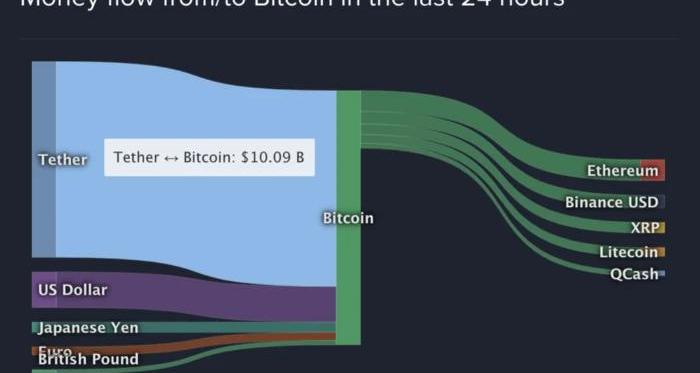 結果是:在過去24小時內購買的所有比特幣中,有超過三分之二是通過Tethers購買的。