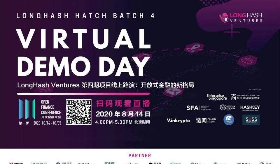 XRP/HKD-1.43%北京時間8月14日16:00,LonghashVentures在線上舉辦了VirtualDemoDay活動,VirtualDemoDay作為OFC的重要環節,邀請了新加坡企業發展局創新與企業助理首席執行官EdwinChow、HashKeyCapital執行董事鄧超分別就「區塊鏈生態系統」以及「開放金融」等話題進行了演講及分享。此外,入圍LongHashHatch孵化計劃第四期的六個項目CredMark、Hashstacs、Pravica、StaTwig、Viewbase、Xend均在本次活動中進行了線上路演。