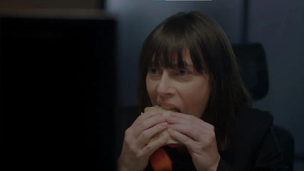 Nora尖酸刻薄的女上司就習慣性的在帥氣男客戶洗澡時,無比猥瑣地一邊偷窺一邊吃晚飯。