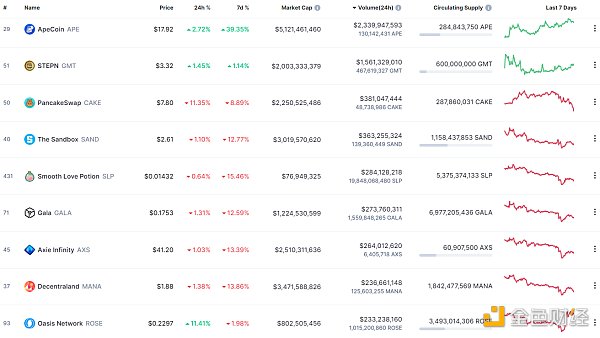 NFT總市值、市值排名前十項目 數據來源:Coinmarketcap