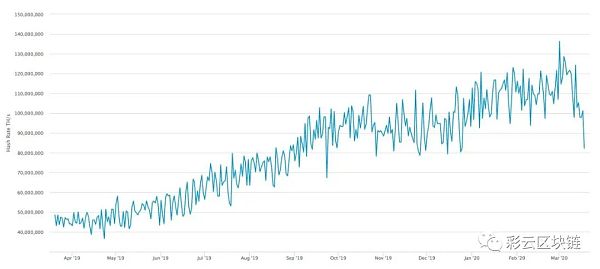 當比特幣價格下跌時,礦工將不再獲利,因此他們被迫停止挖礦,從而導致整個網絡的哈希率下降。正如我們最近所看到的那樣,全網算力已經開始急劇下降,比3月1日的135EH新高下降了30%左右。