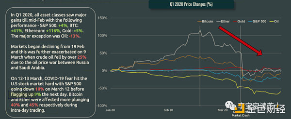 a. 今年一季度除了以太坊,包括比特幣在內的全球資產都在下跌,雖然比特幣和以太坊在”312“單日跌幅達40及45%,但是后經歷了快速反彈