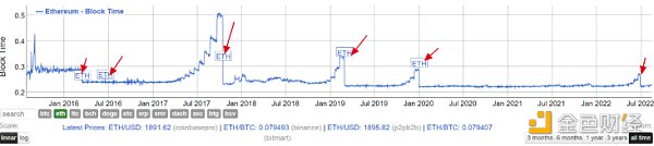 六次推遲難度炸彈 數據來源:bitinfocharts