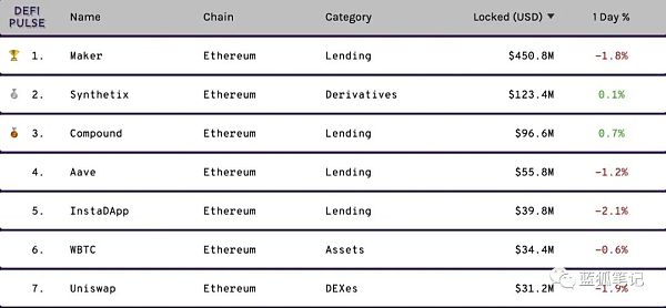 6.鎖定資產量超過3000萬美元的DeFi項目從一年前的1個項目漲至7個項目,這表明以太坊生態系統正在快速走向成熟。