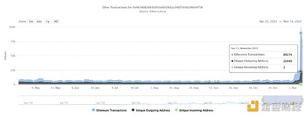 同一天,其中一個負責處理交易的Crypto.com錢包出現了近90,000筆提款。該數量僅限于以太坊和 ERC-20 代幣的提款,其他區塊鏈的提款不計在內,即是說單日提款次數很有可能超越10萬筆。