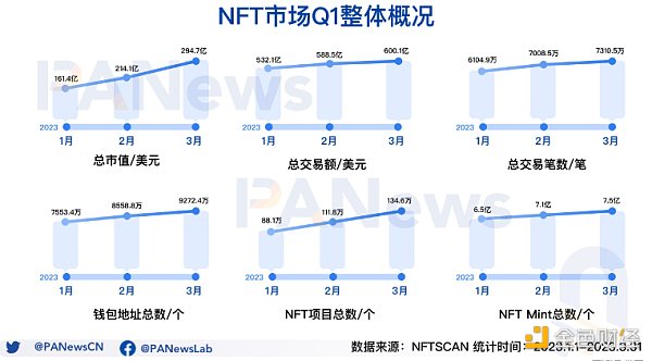 XRP/HKD+2.51%進入 2023 年第一季度以來,NFT 規模出現可喜回升,鏈上交易活動逐漸活躍,市場開始密集上新,新老玩家競爭加劇。為了更清晰了解 NFT 市場今年Q1的真實表現情況,PANews 聯合 NFT 數據服務商 NFTSCAN 共同分析了第一季度市場的主要數據。
