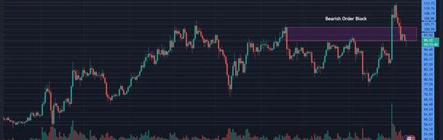 突破97美元大關將推動萊特幣挑戰100美元的門檻,并有可能突破看跌指令區塊的上限103美元。