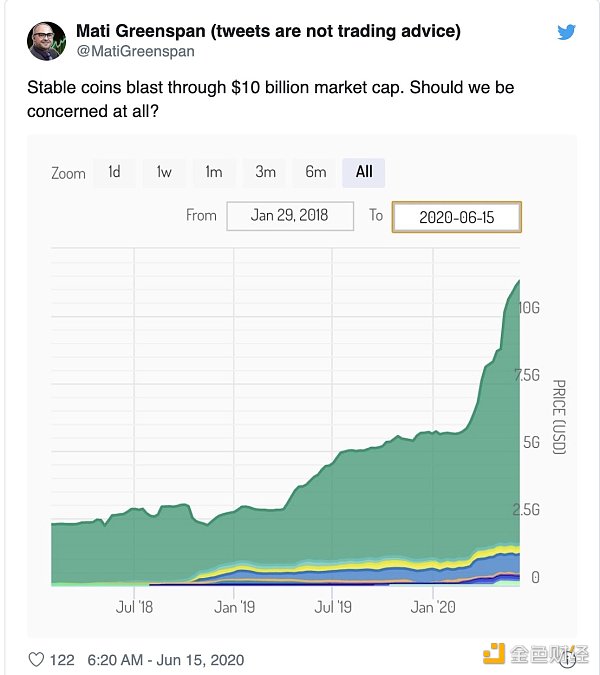 Quantum Economics創始人Mati Greenspan發推文稱:“穩定幣市值突破了100億美元。我們應該擔心嗎?”