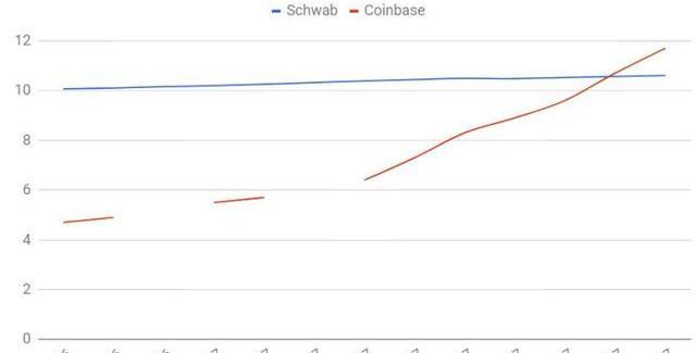 還是讓我們先回到2017年11月27日。那一天,CNBC報道了Coinbase的用戶數達到1330萬。CNBC之所以會報道這個用戶數,是因為這家叫嘉信理財集團的公司。