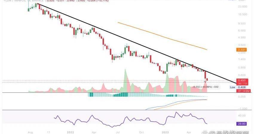 FLOW幾個月來一直處于長期且顯著的下降趨勢中,沒有找到任何支撐位的跡象。因此,進一步跌至零的可能性幾乎是無限的。