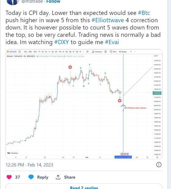 撇開所有其他宏觀方面,包括美國加強監管審查和對經濟衰退的擔憂,今天的CPI數據將顯著決定比特幣價格是否會反彈至24,000美元或繼續下跌至20,000美元。隨著美聯儲繼續收緊貨幣政策以應對高通脹,分析師預計核心CPI分別為0.5%和6.2%,以及0.4%和5.4%左右。