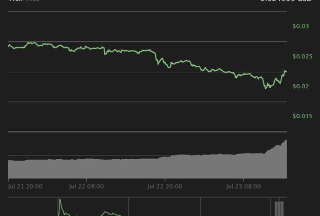另外,從今日波場幣的價格走勢來看,自孫宇晨在推特上直播之后,波場幣的價格也略有回升,截至目前,波場幣的價格為0.16元,在過去一個小時內上漲了約2.27%,但當天的跌幅仍超過13%。