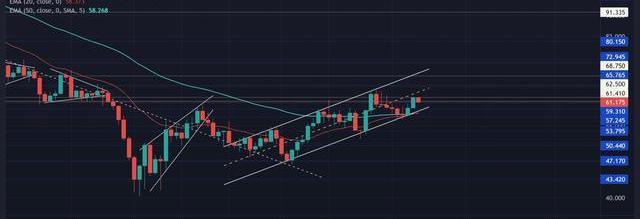 自從將五個月的趨勢線阻力位轉為支撐位以來,多頭一直在努力捕捉61-62美元的區間阻力位。由于20EMA仍然向北看,買盤卷土重來可能會使alt繼續其模式振蕩。在這種情況下,潛在目標將位于上通道上行趨勢線附近的68美元區域。