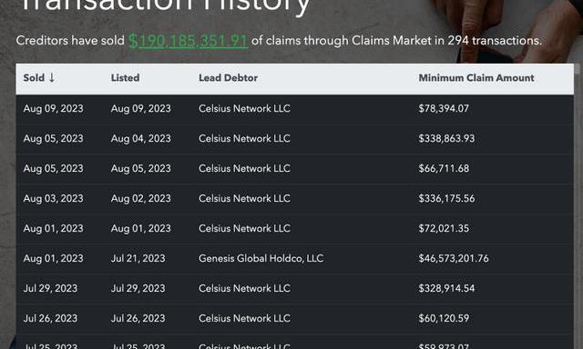 Claims-Market是投行CherokeeAcquisition旗下的理賠產品,面向所有債權交易的用戶而不僅僅是crypto。交易大致流程為賣家簽署《賣方協議》和《簡單索賠轉讓協議》并上架其所持債權;買家簽署買方協議,選擇合適的進行報價或者競標;當交易達成后,賣家簽署的《簡單索賠轉讓協議》以及所有證物被發送給買家,從而確認所有權。Claims-Market還制定《簡單傳遞分配協議》以促進索賠的二級交易。據該平臺數據顯示,目前債權人已通過294筆交易中出售了1.9億美元的債權。