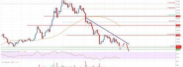 該圖表顯示ADA價格目前低于0.40美元和55條簡單移動平均線。總之,如果價格繼續保持在0.40美元的阻力區域下方,則下行趨勢可能會繼續。