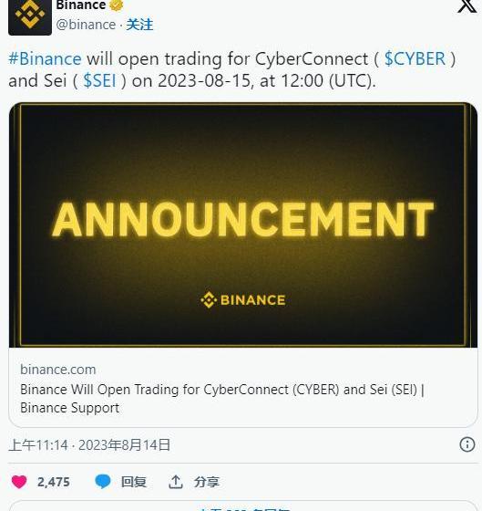 Cyberconnect的代幣CYBER于8月15日添加到幣安平臺。現在可以在CoinGecko和CoinMarketCap等加密貨幣統計網站上跟蹤代幣的價格。