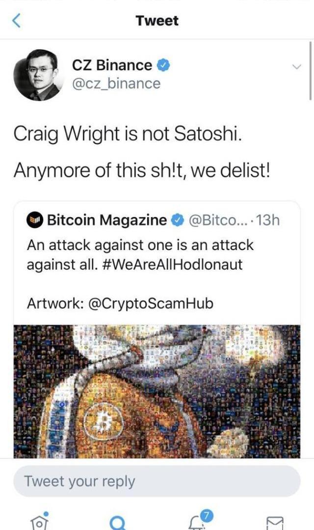 本是一個正義的舉動,然而評論有褒有貶。BSV社區成員認為將個人行為要整個社區為此承擔后果,幣安如果真的做出退市決定將大失人心。