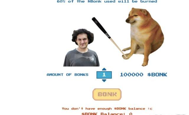 在這層意思上,社區成員0xbustos還制作了一個BONKmeme游戲,游戲畫面是一只柴犬拿著棒球棒敲SBF的頭,你需要花費BONK代幣才能開始游戲