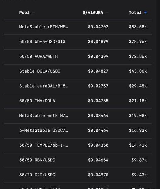 6/Rocketpool是第一個認識到$AURA潛力的人,自從3個月前開始激勵以來,rETH-WETH的流動性增加了6倍。這導致交易量和費用大幅增加,$RPL仍然是Aura上最大的參與者之一。