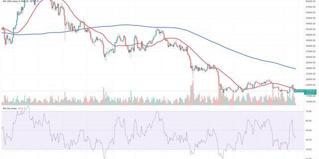 BTC的指標也揭示了一些看起來像底部的東西。相對強弱指數為40,30天移動平均線低于200天,看起來它肯定會反彈。