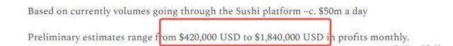 關于FOLD經濟模型的部分會在下文具體描述,在此之前不妨看一眼更加宏觀的協議收入數據。根據外網研究員@0xMinerva的估算,按照目前Sushi日均5000萬美金交易額的前提,在多個鏈部署Manifold的OpenMEV服務時,Manifold協議的月收入初步預計會在42萬美金到184萬美金之間。