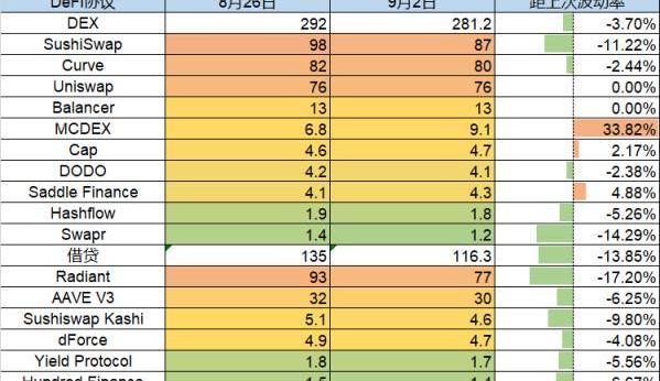 本周整體TVL下降2.43B,下降幅度達3.89%;本周行情端有所回暖,但整體TVL仍舊在加速向下。