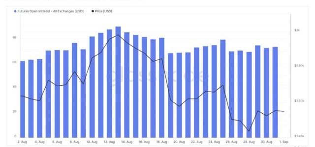 貨幣流動性整體緊縮。美聯儲高官傳遞鷹派發言,聲稱明年早些時候加息至4%以上,明年降息無望。美元指數徘徊20年新高。每次美國經濟衰退,市場泡沫破滅,都是美聯儲加息導致,無一例外。美股指數8月共跌4%,加密市場跟隨美股調整。