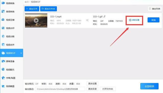 ④到這里還沒有結束哦,如果小伙伴們屯了很多想要轉換成GIF的視頻,咱們是不需要一個個來的,可以點擊左上角,對每個文件的參數重復上述的設置,點擊右下角就可以啦,是不是非常的便捷呢。