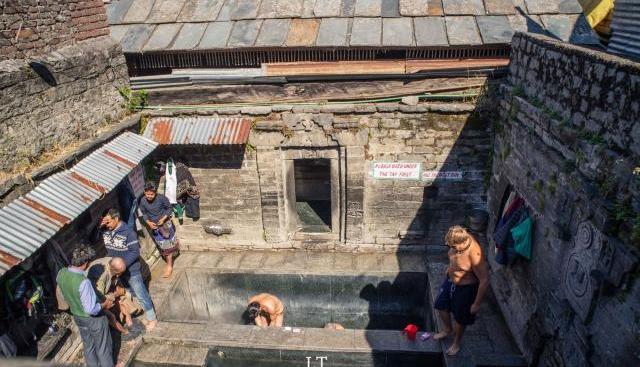 默納利的第三部分在另外一座小山坡上,此處為溫泉村,有免費溫泉供當地人使用,游客也可以隨意享受溫泉,供人泡澡的免費溫泉在一座神廟里,男女分開各在一邊。而神廟外面有幾個溫泉水龍頭,當地人都用這些溫泉洗衣洗澡洗鍋碗瓢盆等等,看著頗為有趣。