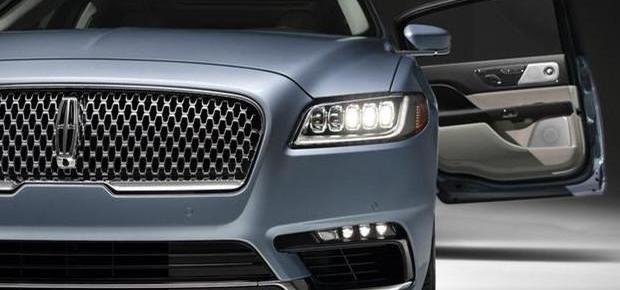 林肯大陸對開門版本車型,從車頭前臉來看,顯得優雅精致;引擎蓋隆起的筋條,凸顯出了一定的力量感,兩側銳利的大燈組內部裝配了羽翼LED燈組,顯得科技感很強,流線式的LED行車燈,以及在側面設計橘黃色燈組,視覺沖擊感很強,標志性的中網,內部裝飾了銀色網裝飾格柵,顯得精致感十足。