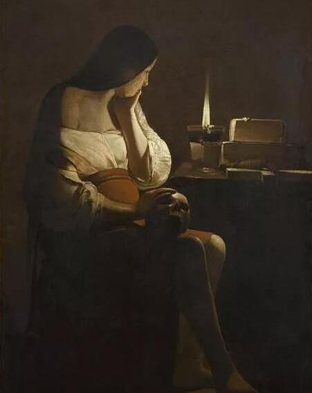 法國喬治·德·拉圖爾《油燈前的墨大拉》,布上油畫,縱128厘米×橫94厘米,巴黎盧浮宮藏。