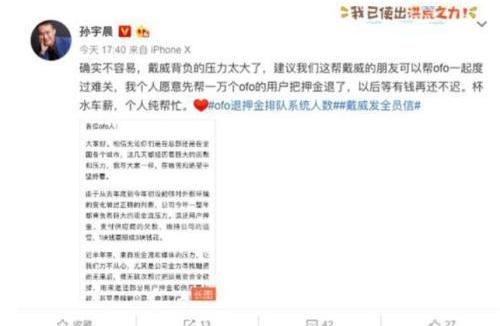 考慮到OFO的押金有人是99元,有人是199元,孫老師這個口嗨支票金額約在百萬左右。