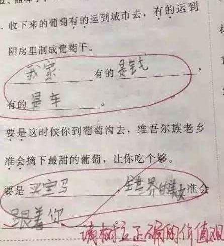 不過這個小學生的老師好像很無奈,看到孩子的答案又氣又笑:孩子的思維真的很好,智商也很高,再這樣下去,我都教不了了。