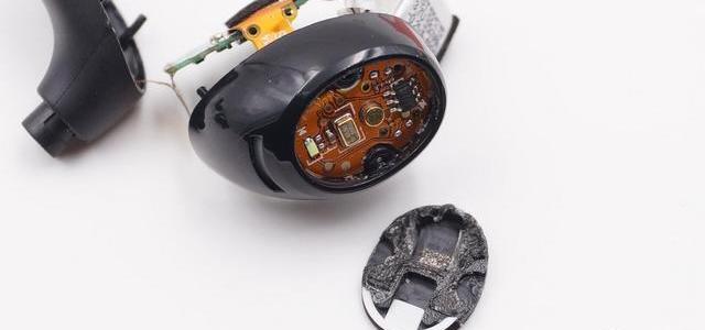 從接縫處拆開耳機,耳機內部采用排線連接。