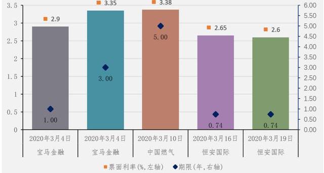 2020年3月,隨著新冠疫情全球擴散,各國經濟下行壓力加大。在美聯儲緊急大幅降息并推出“無上限”量寬政策背景下,全球降息潮開啟,國內貨幣政策空間加大,資金面整體延續寬松,境內流動性處于合理充裕狀態。繼2月份恒安國際以其最低票息率記錄2.85%成功發行期限270天的超短期融資券后,本月其發行的三只超短融票面再創新低,分別為3月16日的2.65%和3月19日的兩只2.6%。與此同時,寶馬金融發行的1年期和3年期品種熊貓債最終票面也均落在了定價區間中間位以下,其中20億元3年期人民幣債券較其2019年3月發行的同期限熊貓債票面顯著下行65個基點。