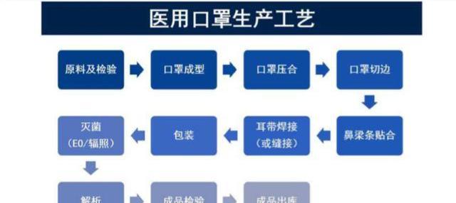 醫用口罩的生產需要無塵無菌的環境,車間要達到10萬級凈化車間的要求;還要求應有空調凈化系統、純化水系統。口罩從原料進廠,需經過口罩成型、壓合、切邊、呼吸閥焊接、耳帶點焊、鼻梁條線貼合、呼吸閥沖孔、包裝、EO滅菌、解析、檢測等多個工藝環節方可制造完成。為實現以上制造過程,需配置全自動生產設備或半自動生產設備。全自動設備是一體成型,一般1臺本體機拖2到3臺耳帶機,從原料投料到包裝完成都可實現。而半自動設備則需按以上流程逐個配置,包括口罩成型機、口罩壓合機、口罩切邊機、呼吸閥沖孔機、鼻梁條線貼合機、耳帶點焊機、呼吸閥焊接機等。