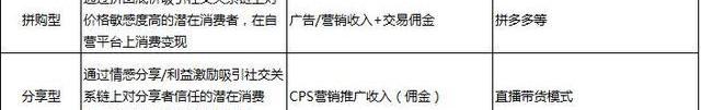 該模式下,平臺依托社交關系鏈促進用戶裂變和商品傳播,按照平臺商品是否自營同樣可分為2類,具體的商業模式與盈利構成如下表: