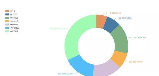 這里就比較有意思了,1000元以上的銷售額占比達到32.24%,果然是人民幣玩家的專選。其次500-1000元的商品銷售額占比15.91%。緊接著較為平價的100-200元款,銷售額占比15.76%。