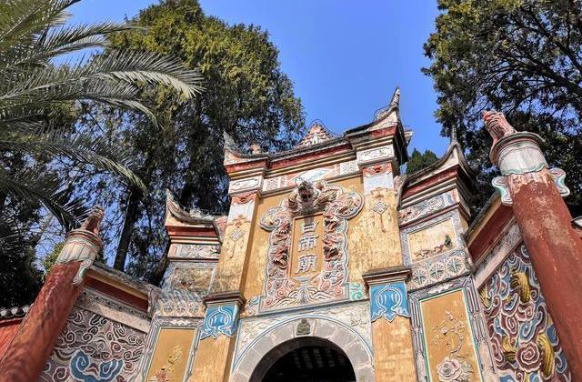 圖片源于網絡武侯祠,祠中供奉諸著的是諸葛亮及其子諸葛瞻、孫諸葛尚的彩色塑像。