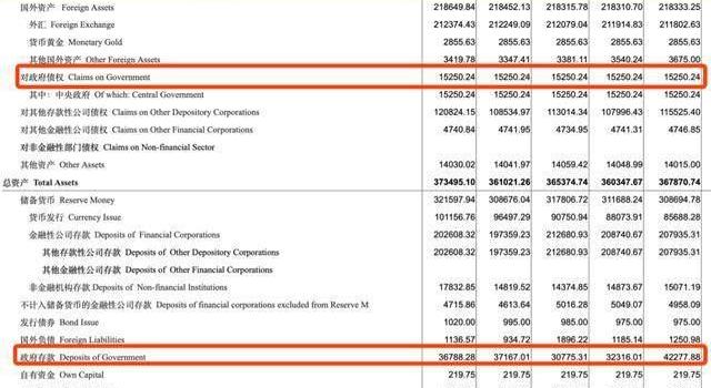 我們還忽略總資產下的“對政府債權”,以及總負債下的“政府存款”。